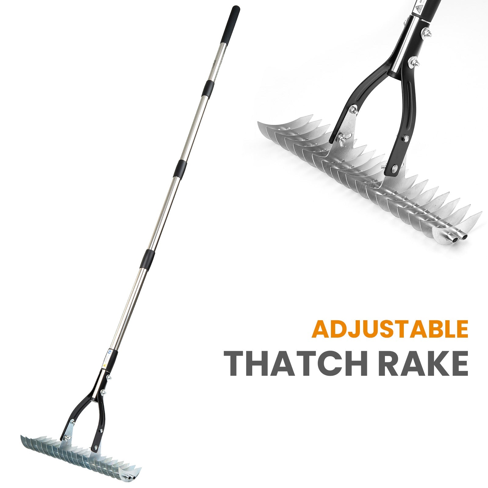 - Maintains Lawn Health & Aesthetics: Effectively removes thatch layers, fallen leaves, and debris, allowing better airflow and sunlight absorption for a healthier, greener lawn. The ergonomic handle reduces back strain for comfortable use.