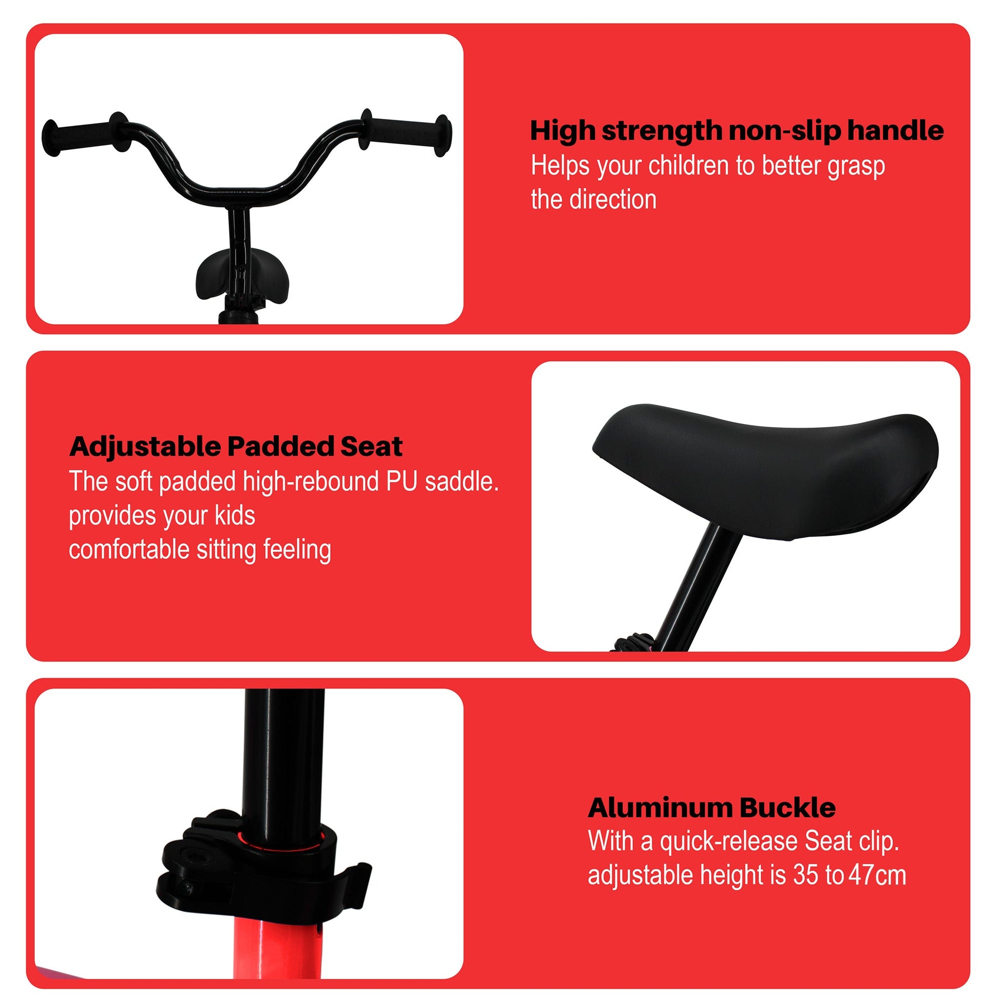 - Adjustable Handlebar / Seat - Within the safety line range, (Seat height: 35-47cm, Handlebar height: 60cm - 67cm) you can constantly adjust the appropriate position according to your child's height. Suitable for children aged 2-6 years. Simple assembly is required. Comes with easy assembly instructions.