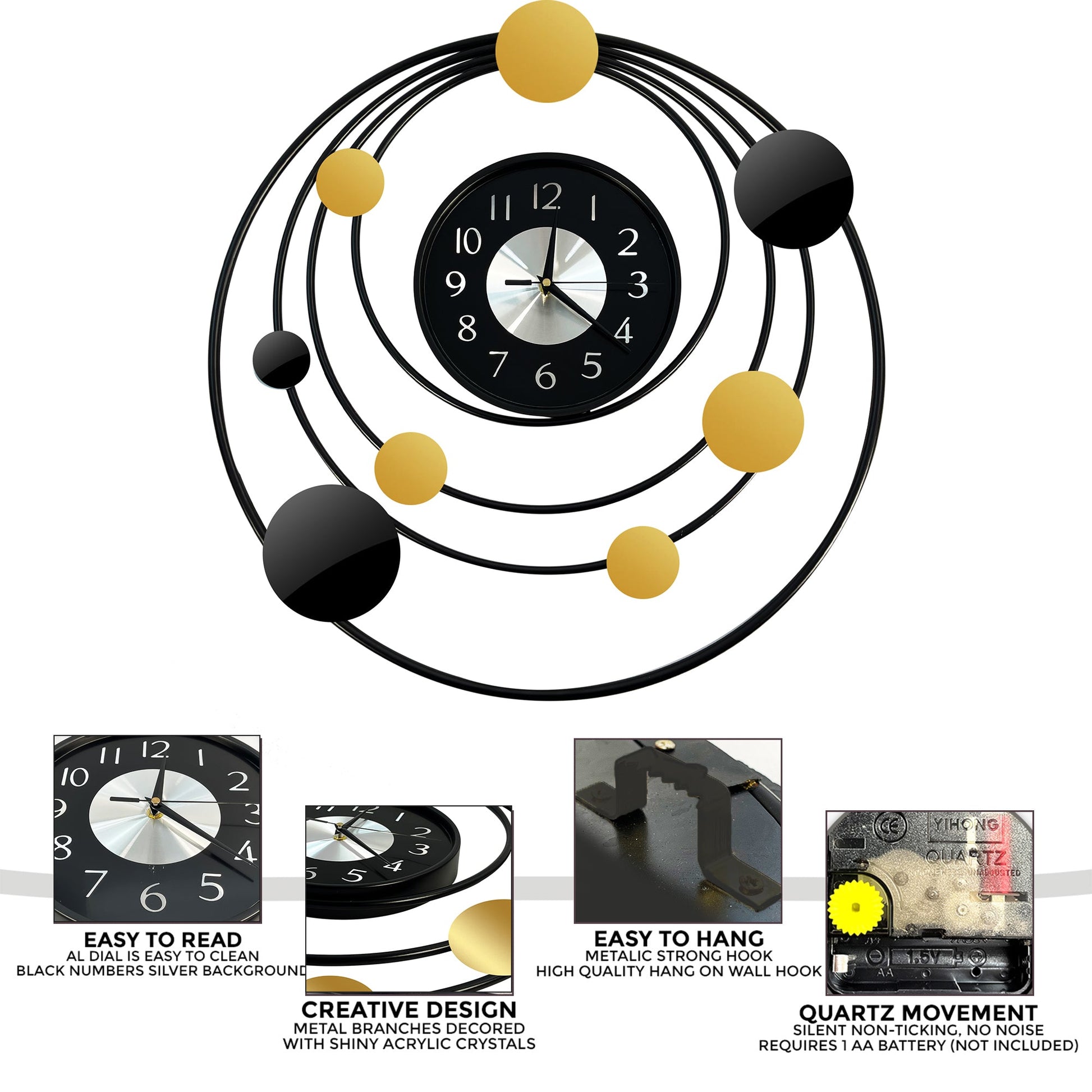 - Easy Battery Operation: Say goodbye to messy wires and complicated installations. Our Galaxy Shape Wall Clock is powered by a single AA battery (not included), making it hassle-free to set up and maintain.