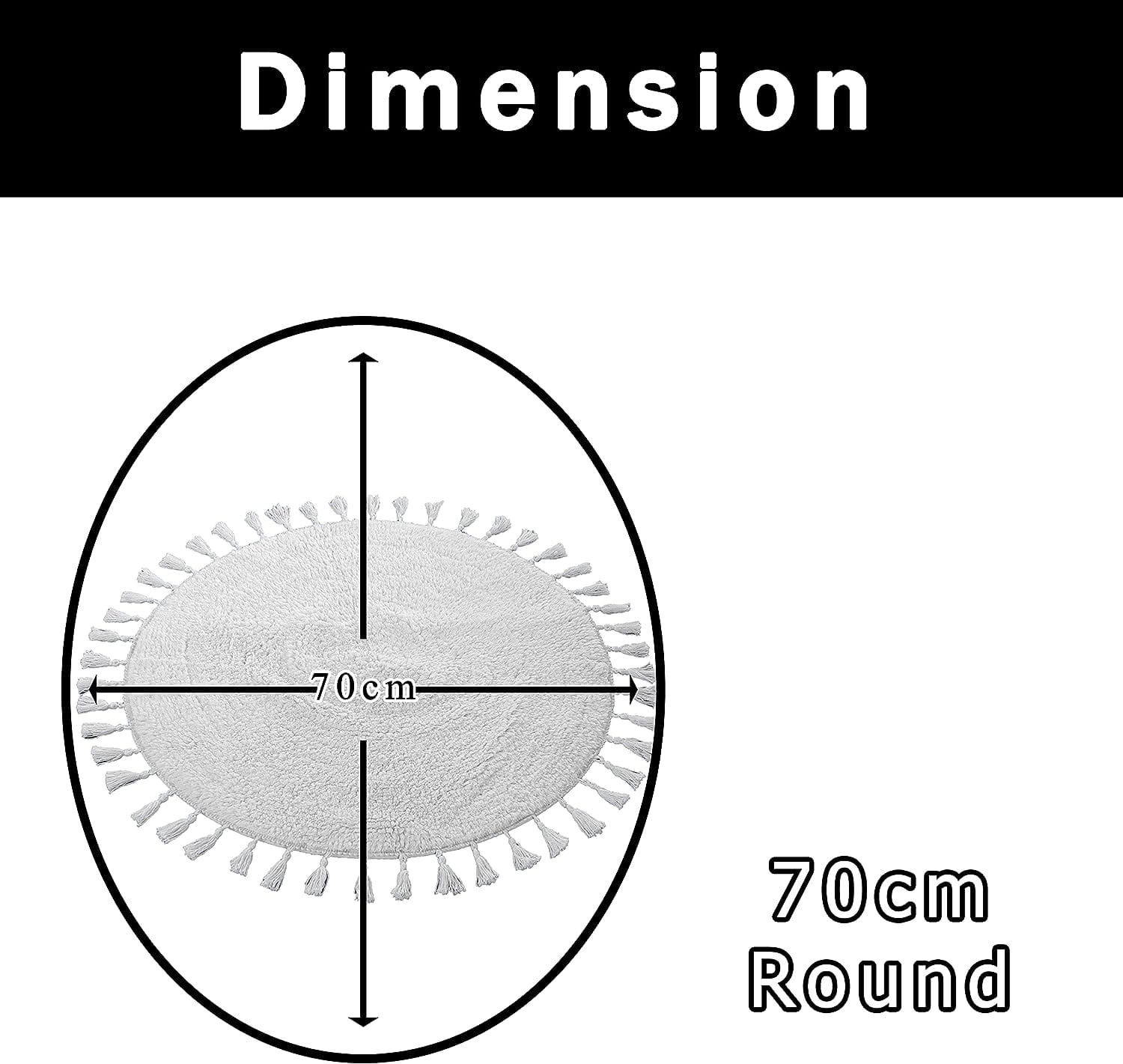 Description: The round shape and tassel edges add a touch of elegance and style to your bathroom decor. Available in multiple colours, this bath mat complements various bathroom themes and styles.
