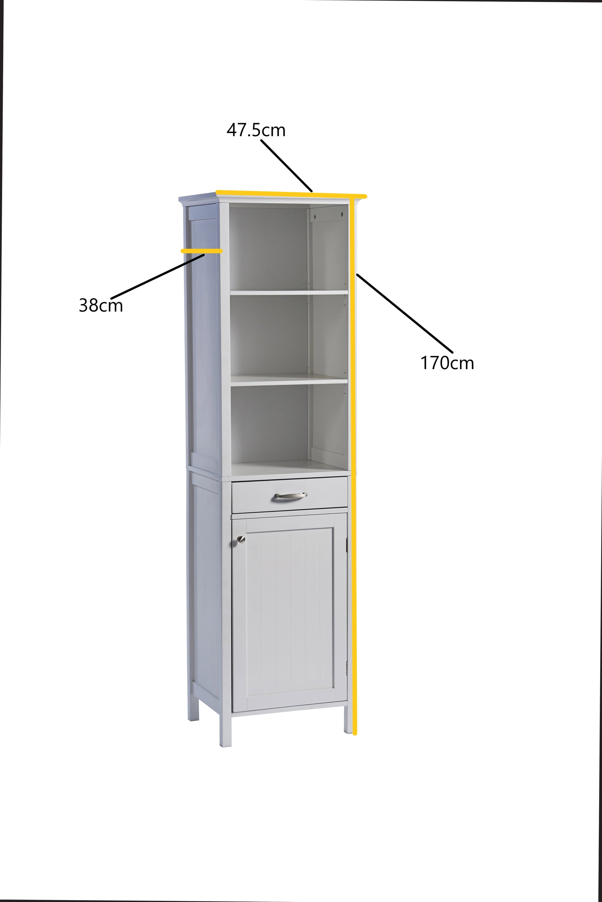 Maximize your storage space with this elegant Tall Storage Cabinet, available in crisp White or modern Grey finishes. Standing 170cm tall, with a compact footprint of 38cm by 47.5cm, this cabinet is perfect for rooms where space is at a premium. Featuring multiple shelves behind a sleek door, it offers ample room to organize everything from towels and toiletries to books, kitchen essentials, or office supplies. The slim, contemporary design blends effortlessly with both classic and modern interiors, making it a versatile solution for bathrooms, kitchens, bedrooms, or utility rooms. Built from sturdy materials for long-lasting use, this cabinet combines style, storage, and functionality in one smart piece.