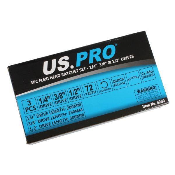 US PRO Tools 3pc Flexi Head Ratchet Set 1/4" 3/8" 1/2" Drives 4209