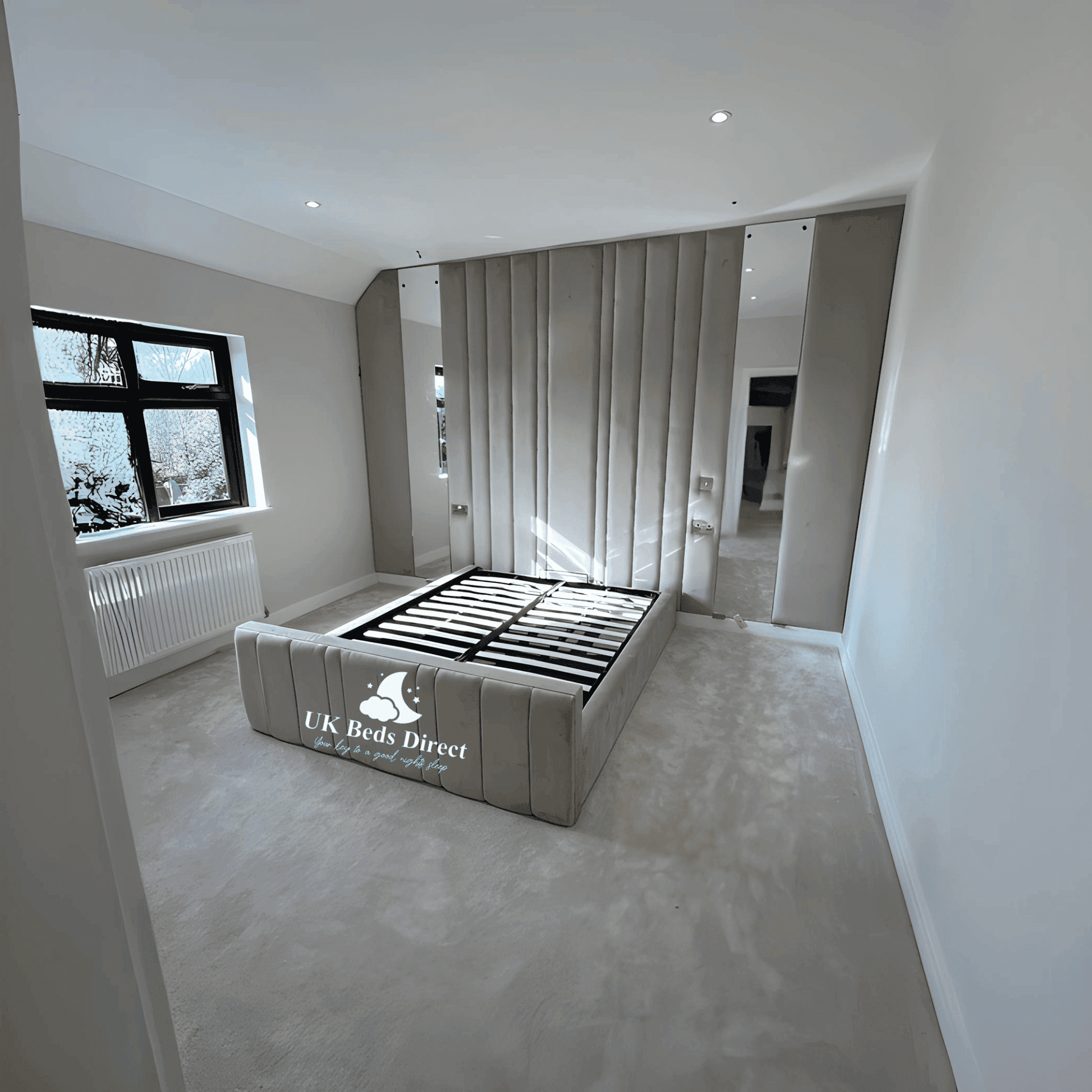 The Vienna’s tall, vertical headboard panels offer a bold, contemporary look that suits both modern and classic interiors. It’s a perfect centrepiece for any stylish bedroom.