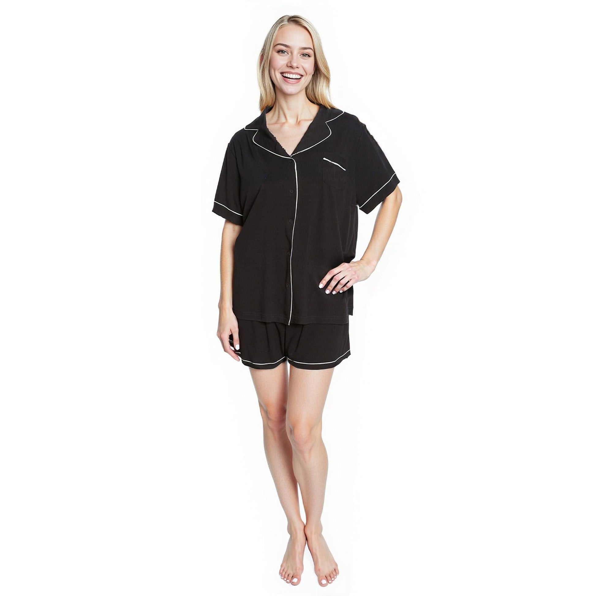 Women's Black Short Pyjama Set Super Soft Sleepwear Nightwear Button Up Top and Shorts with Pockets PJs by Daisy Dreamer