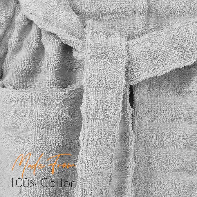 Women's Hydro Ribbed Ultra Soft 100% Cotton Hooded Bath Robes with Pockets and Belt Luxury Terry Towelling Loungewear Sleepwear in White and Grey by OLIVIA ROCCO
